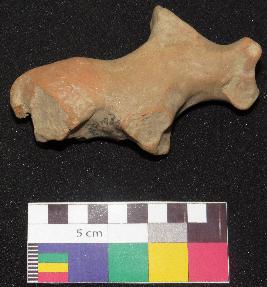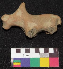 | Description / विवरण | Well fired, red color terracotta figure of bull is made of well levigated clay, having broken horns, defaced face, neck, elongated body, pinched hump on the back, broken legs and a small tail. |