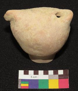 | Description / विवरण | Well fired, dull red color handmade, bird shaped terracotta whistle is made of well levigated clay, having broken head, elongated hollow body, small tail with a hole and hollow cylindrical stand. The object is called whistle because it has a hole which produces sound by forcing air through it. |