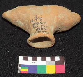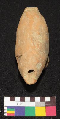 | Description / विवरण | Well fired, handmade red color terracotta whistle is made of well levigated clay, having elongated body with hole at one end, another end is broken and a hollow cylindrical stand. The object is called whistle because it has a hole which produces sound by forcing air through it. |