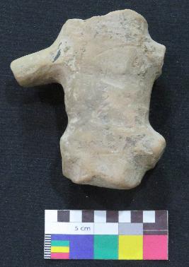 | Description / विवरण | Roughly made medium fired, upper body portion of headless terracotta human figure is in red color, made of well levigated clay and in standing position. It is having shoulders, two arms and intact upper body include bust and stomach part. It has a hole at neck. |