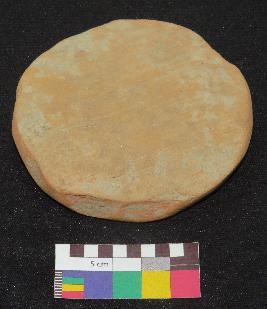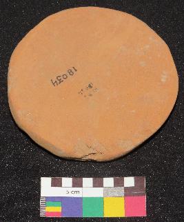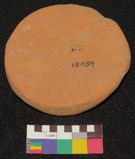 | Description / विवरण | Well fired, large size terracotta hopscotch is red in color, circular in shape, made of well levigated clay and contains mica. Both surfaces are smooth and finely made, one side is in bright red color and have faded horizontal line impression, and other side is in dull red color, it also has horizontal line impressions. The object is slightly concave and it is partly thick and thin. |