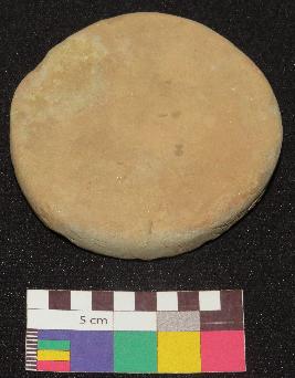 | Description / विवरण | Well fired, circular shape medium size, terracotta hopscotch is dull red in color, made of well levigated clay having smooth surfaces and finely made. One side is plain and in dull red color, while other side is partly rough and in light grey color. |