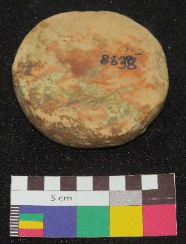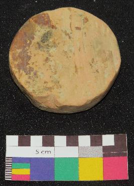 | Description / विवरण | Thick handmade, circular shaped medium size, terracotta hopscotch is in red color, made of well levigated clay, having circular flat ends. It has one surface partly rough and smooth, and other has horizontal line impression. |