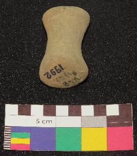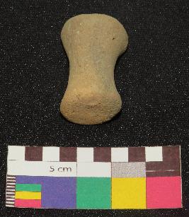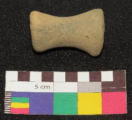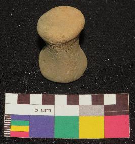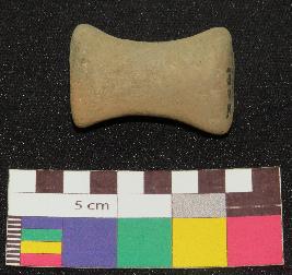 | Description / विवरण | Well fired, damru shape, terracotta gamesman is partly in dull red and light grey color made of well levigated clay having circular flat ends and slightly rough body. |