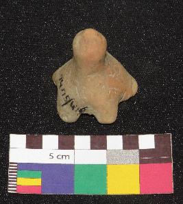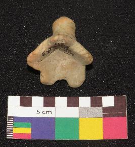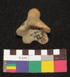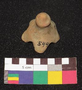 | Description / विवरण | Well fired, dull red color, terracotta gamesman is made of well levigated clay having thick pointed knob, plain body and shallow base with five foots. |