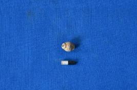| Description / विवरण | A double collared short barrel shaped bead of faience in pinkish colour with a smooth surface and a perforation at the center. |