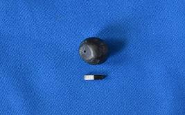 | Description / विवरण | A roughly circular shaped bead of jasper in black colour with an unfinished surface and a perforation at the center. |