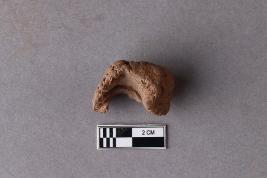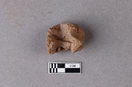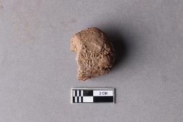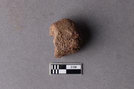 | Description / विवरण | A broken clay lump bearing a partially available undeciphered two-line inscription within a circular incuse, the left portion of the sealing is broken and missing. Reed marks are seen at the back. |