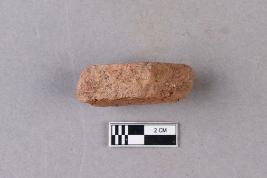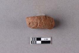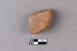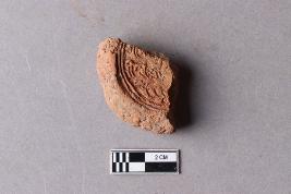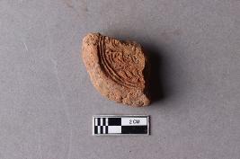 | Description / विवरण | Fragment of clay lump bearing a few alphabets of probably Siddhamatrika script with a part of the usual lotus motif beneath is seen. The remaining portion is broken and missing. |