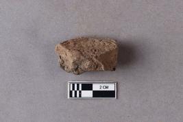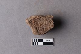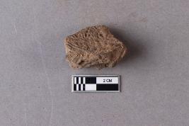 | Description / विवरण | Broken clay lump bearing a few alphabets of probably Siddhamatrika script with the usual lotus motif beneath is seen. The rest of the sealing is broken and missing. |