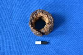 | Description / विवरण | A ring shaped object of iron with corrosion, the purpose of it must have been to fix an iron rod probably and used as a filer or chisel. |