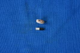 | Description / विवरण | A barrel shaped bead of chert in white colour with a smooth surface and a perforation at the center. |