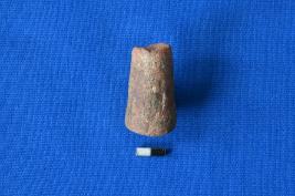 | Description / विवरण | A cylindrical shaped gamesman terracotta in red ware with tapering sides, flat circular base, depression at the top and a smooth surface. |