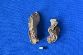 | Description / विवरण | Fragments of a earstud of lead with four and five layers of lead sheets put together to make the earstud. It is broken into two pieces. |