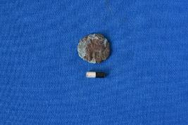 | Description / विवरण | A circular shaped uninscribed die-struck copper coin of Satavahana period with an elephant on the obverse and Ujjain symbol on the reverse with a corroded surface. |