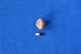 | Description / विवरण | A small biconical bead of terracotta in red ware with a fairly smooth surface and a perforation at the center. |