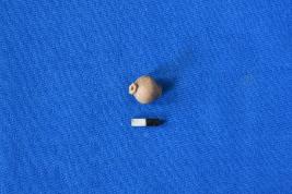 | Description / विवरण | A double collared spherical shaped bead of terracotta in red ware with smooth surface and a perforation. |
