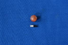 | Description / विवरण | A spherical shaped bead of carnelian in red colour with perforation at the center and a smooth surface. |