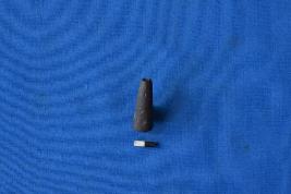 | Description / विवरण | A conical shaped stopper of terracotta in black colour with a flat circular base and a smooth surface. |
