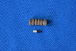 | Description / विवरण | A cylindrical shaped bead of terracotta in red ware with six segments, smooth finish at the surface and a perforation at the center. |