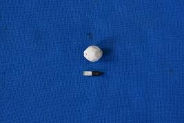 | Description / विवरण | A well finished short barrel shaped multifaceted bead of chalcedony in white colour with a hexagonal cross section and a perforation at the center. |