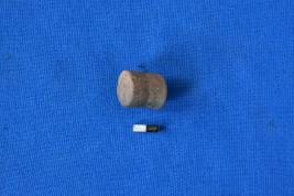 | Description / विवरण | An intact earstud of terracotta in shades of red and grey with plano-convex section and a smooth finish at the surface. |