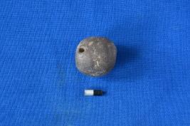 | Description / विवरण | A roughly circular shaped bead of terracotta in black colour with a smooth surface and perforation at the center, a crude workmanship. |