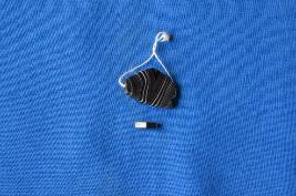 | Description / विवरण | A roughly triangular shaped bead of banded agate with bands of black and white, it has a perforation and a polished surface. It is broken near one of the drilled hole. |