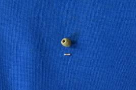 | Description / विवरण | A short cylindrical bead of green coloured glass with a smooth surface treatment and perforation at the center. |