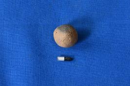 | Description / विवरण | A round shape terracotta marble with a smooth surface and has red and black colour on the surface because of firing. |