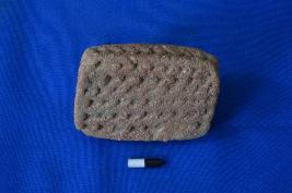| Description / विवरण | A skin rubber of terracotta in a rectangular shape with incised designs in V type pattern on the surface of the object, the fabric of the rubber is medium coarse for the roughness to rub. |