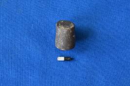 | Description / विवरण | A cylindrical shaped terracotta earstud in black colour with a flat circular base and tapering on the sides. |