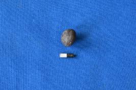 | Description / विवरण | A small arecanut shaped bead of terracotta in black colour with a smooth surface and perforation at the center. |