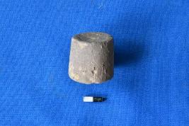 | Description / विवरण | A cylindrical shaped earstud of terracotta in grey colour with a smooth surface, a fine fabric and flat circular from either sides. |