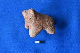 | Description / विवरण | A handmade animal figurine of terracotta in red ware with its head broken and rest of the body with four legs and a raised head. |