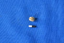 | Description / विवरण | A conical shaped bead of lime paste in white colour with a smooth surface and a perforation at the center. It is flat from top and the lower end that is tapering is broken. |