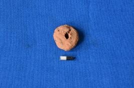 | Description / विवरण | A circular shaped wheel of terracotta in red ware with smooth surface and a perforation at the center. |