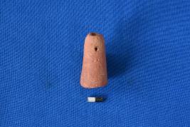 | Description / विवरण | A conical pendant of terracotta with a transverse perforation near the top narrow end, flat circular base and smooth surface. |