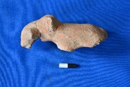 | Description / विवरण | A handmade terracotta figurine of an elephant with its trunk and four legs broken. The surface of the figurine is smooth and is of red ware. |