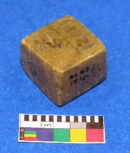| Description / विवरण | Cuboid shaped, weight stone used for weighting materials is yellowish in color having, smooth surface, rectangular section, rectangular sides, upper and lower surface are square in shape. |