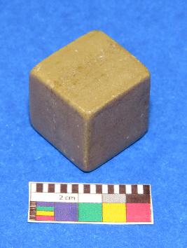 | Description / विवरण | Cubic shaped, weight stone used for weighting materials is yellow in color having, smooth surface, square section, and all equal sides. |