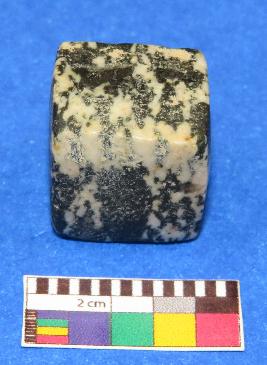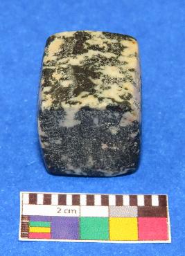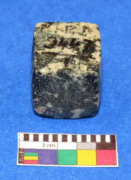 | Description / विवरण | Cubic shaped, weight stone used for weighting materials is partly black and yellow in color having, smooth surface, square section, and all equal sides. |