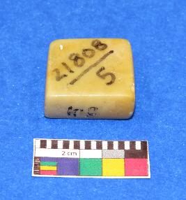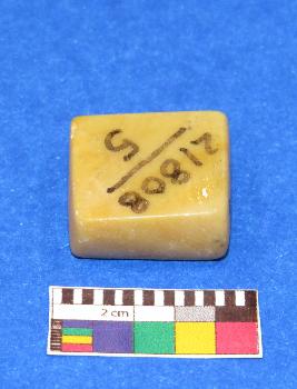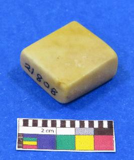 | Description / विवरण | Cuboid shaped, thin weight stone used for weighting materials is dull yellow in color having, smooth surface, rectangular section, rectangular sides, upper and lower surface are square in shape. |