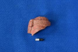 | Description / विवरण | Fragment of terracotta human head with portion of right eye, forehead and closely fitted headgear. The figurine is double mould made and has a polished surface. |