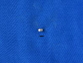 | Description / विवरण | A tubular shaped bead of glass in white colour with a perforation at the center and smooth surface. |