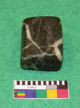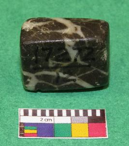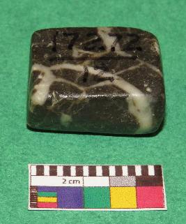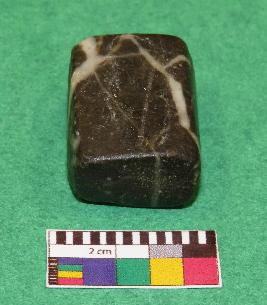 | Description / विवरण | Cuboid shaped, weight stone used for weighting materials is black in color having yellowish color bands, smooth surface, rectangular section, rectangular sides, upper and all lower surface are in square shape.. |