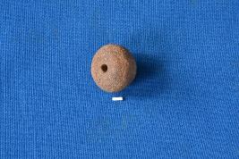 | Description / विवरण | An arecanut shaped bead of terracotta in red ware with striation marks on the surface and perforation at the center. |