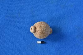 | Description / विवरण | Terracotta, double moulded elliptical double collared bead with perforation. Entire surface except the collars show decorative patterns all around. |