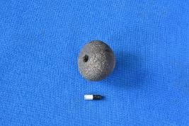 | Description / विवरण | An arecanut shaped bead of terracotta in black colour with striation marks on surface and a perforation at the center. |
