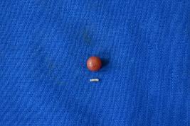 | Description / विवरण | A spherical shaped bead of carnelian in red colour with a smooth surface and not perforated. |